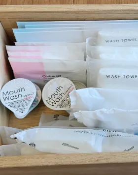 Poolen ITOでは、無料Wi-Fi、コーヒー・紅茶サービスに加え、タオル・歯ブラシなどのアメニティもご用意しております。