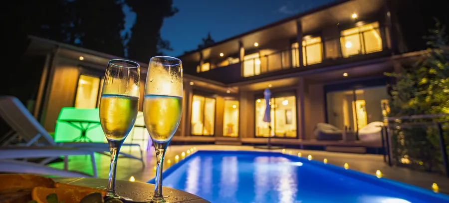 屋外に出ると当施設のメインコンテンツであるプールが貴方を待っています。 温水対応で一年中快適な温度に調整されたプールを心ゆくまでお楽しみください。 もちろんサウナの水風呂としてもご利用いただけます。